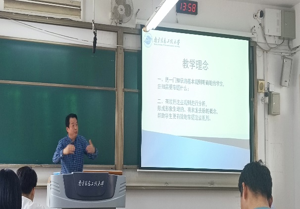 会议邀请公共物理教学部教学经验丰富的蒋晓龙老师作了题为“《大学物理》---教书育人”的专题报告。蒋老师用了近40分钟时间,分享了自己近30年的“浓缩版”大学物理课程教学实践心得,干货满满。蒋老师说,大学物理授课承载着教书育人的重任,教学过程中需要善于采用生动形象的演绎吸引学生的关注,随时随地激发学生学习兴趣—— “鸡毛掸子”物理道具、“表情包”老师、“神清气爽”的大学物理…… 蒋老师分享了一个又一个教学技巧和案例细节,例如,在讲授电磁场内容时,蒋老师用鸡毛掸子比喻无限长带电导线,利用开关门的演示阐释刚体转动定理的力学效应,用生动形象的语言清晰解析物理知识点。另外,在大学物理“课程思政”方面,蒋老师提出,要善于融入“课程思政”要素,潜移默化地将专业知识传授与科学价值观教育充分结合。在教学过程中,蒋老师和学生达成“学习预期协定”,用“激励-努力-预期”的方式达到管理教育学生的目的,在潜移默化中,学生整体的物理成绩有了显著的提高。据悉,2022年4月,扬子晚报紫牛新闻、中国校园在线、搜狐网、腾讯网等线上媒体陆续报道了南信大“物理说书人”蒋晓龙老师的授课事迹点滴,蒋老师用其独特而又“有点儿意思”的教学方法,抓住了大学生物理课的兴趣点,开启授课“流量密码”,获得学生的一致好评。