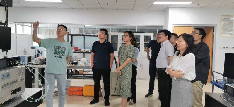 最后,邳州市官湖镇一行参观了江苏省大气海洋光电探测重点实验室及气象光子与光电探测国际合作联合实验室,并与专业教师做了细致交流。