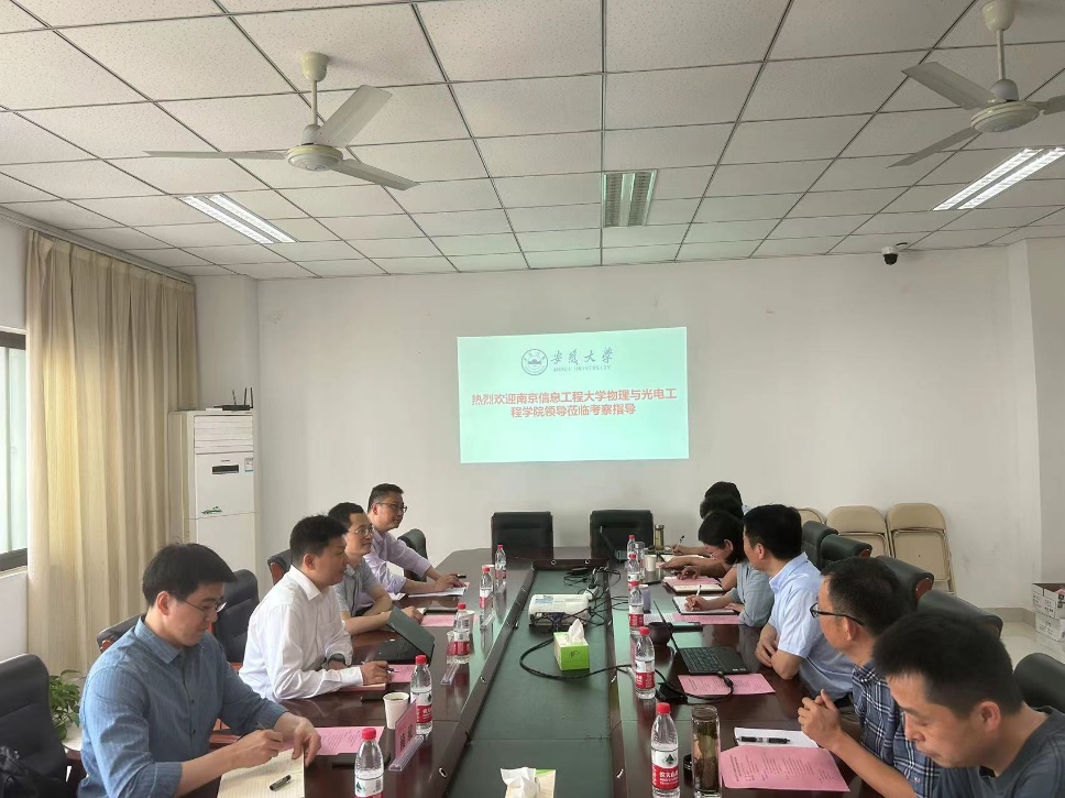 6月1日上午,学院一行赴安徽大学yd云顶集团官网调研学习,安徽大学物电院院长田明亮、院党委书记徐震虹等领导班子全体成员出席调研会。据了解,安徽大学yd云顶集团官网与南信大yd云顶集团官网,不仅学院名称相同,而且学院发展过程、专业与学科的设置布局等也极为相似。调研会上,田明亮院长介绍了学院历史、学科发展、科研团队和人才培养等方面的情况,与会双方领导就博士点申请、大学物理课程教学、工程认证、学生升学就业等关心的话题展开了热烈地讨论。其后,安徽大学物电院物理系教工党支部书记陈含爽老师还介绍了支部建设省级样板党支部的经验,yd云顶集团官网物理系教工党支部与安大物电院物理系教工党支部签署了结对共建协议。交流会后,yd云顶集团官网一行还参观了安徽大学院士工作站、科普教育基地和基础物理实验中心。