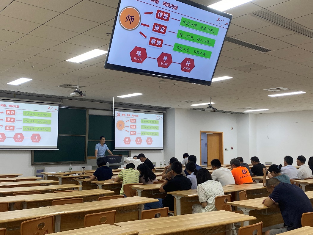 最后,副书记徐志勇作师德师风主题教育报告。报告深入学习了习近平总书记关于教师队伍的重要讲话,解读了《新时代高校教师职业行为十项准则》《研究生导师指导行为准则》文件精神,分享了教育部公开的师德失范典型案例,要求全院教职工切实履行好教书育人职责,加强自身师德修养,恪守师德底线,潜心教学,热爱、尊重、关心、帮助每一位学生,做学生成长道路上的引路人,做“四有”好老师。