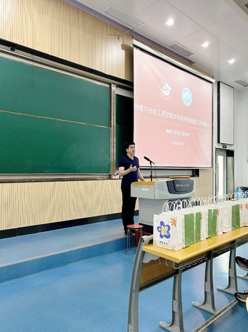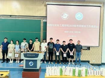 会上,赖敏副院长立足2020级本科生考研意向统计大数据,科学分析,希望同学们结合暑期复习备考效果,“格物穷理,自知者明”,精准定位目标院校;聚焦考研长时段,鼓励同学们“前路漫漫亦灿灿,往事堪堪亦澜澜”,坚定信念、科学制订复习计划;围绕学院特色,本院研究生学业及就业情况,向同学们表示“信大百花园,藕舫荷花香”。路虽远,行则将至。最后他希望同学们与物电同行,以星辰指引方向,用汗水与坚持成就考研上岸的模样。