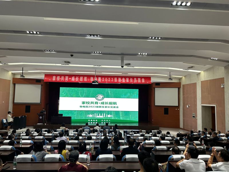 为加强本科生家校之间的沟通,夯实学院学生教育管理工作实效,9月9日下午,物电院召开以“家校共育•成长起航”为主题的2023级本科生家长见面会。学院副院长(主持工作)涂兵、院党委副书记(主持工作)徐志勇、院党委副书记兼副院长田智、副院长赵德林、院长助理杨翠红以及学办全体辅导员出席会议,2023级全体本科新生家长参加了此次会议,会议由副书记田智主持。