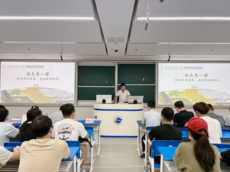 涂兵首先代表学院向2024级新同学们表示热烈的欢迎和诚挚的问候,感谢大家信任南信大、选择物电院。恰逢九一八事变爆发93周年,他以“传承红色基因 勇担报国使命”为主题,为2024级本科新生带来了“院长开学第一课”。他带领大家共同回顾了九一八历史史实以及信大砥砺前行、与时俱进、开拓创新的奋斗历程;介绍了学院历史沿革、师资队伍、科研团队、教学团队、人才培养以及近年来学院各项事业取得的成绩。他勉励新生继承好、发扬好红色基因,树立远大理想,胸怀报国之志,勇担历史使命,敢于主动创新,在坚定理想信念和矢志报国中放飞青春梦想。