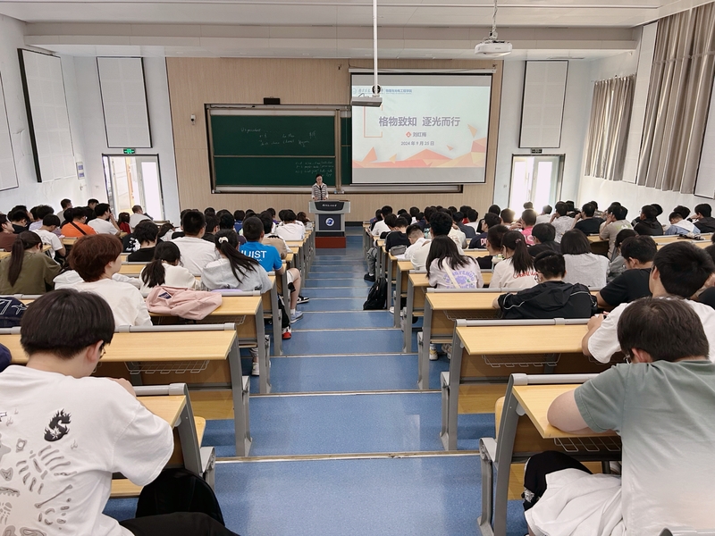 为引导2024级本科新生尽快适应大学生活,明确学习方向,树立远大理想,以积极向上的精神面貌开启人生新篇章,物电院联合新东方于9月25日在北辰楼东阶教室举办新生生涯规划暨英语学习专题讲座活动,学院党委副书记兼副院长刘红梅、新生辅导员以及2024级全体本科新生参加本次活动。